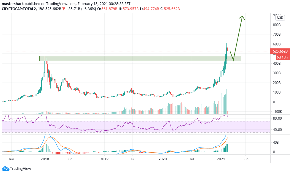 Crypto total market cap exclude btc, $ (calculated by tradingview) .